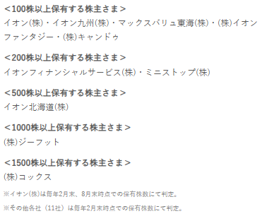 イオン以外にも、以下のイオングループ各社の株主も利用できます。